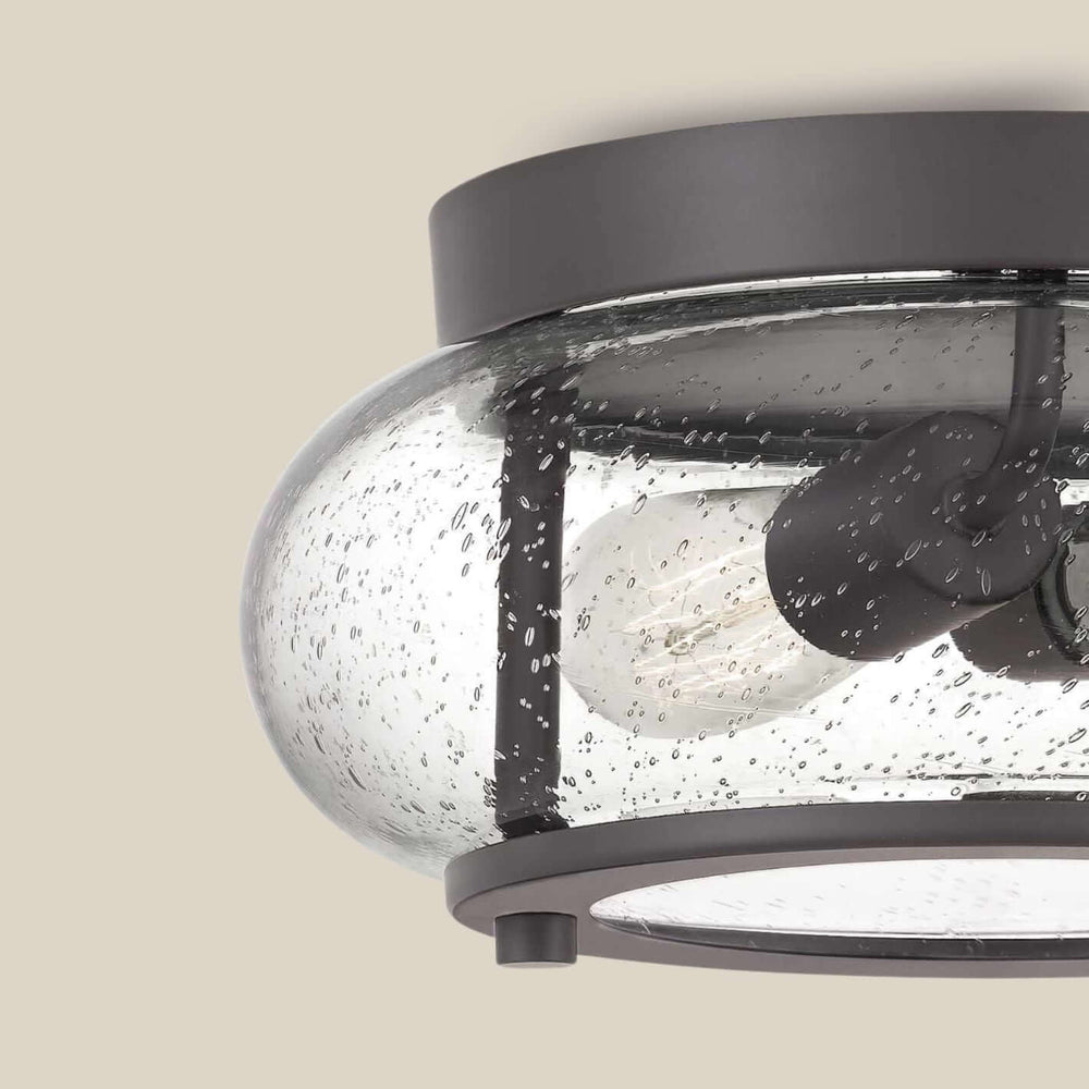 Crafted for looks and practicality. Exquisite seeded glass adds a touch of luxury, while the classic flushmount light design creates an impactful look. The steel frame masterfully cradles the glass shades creating visual balance.