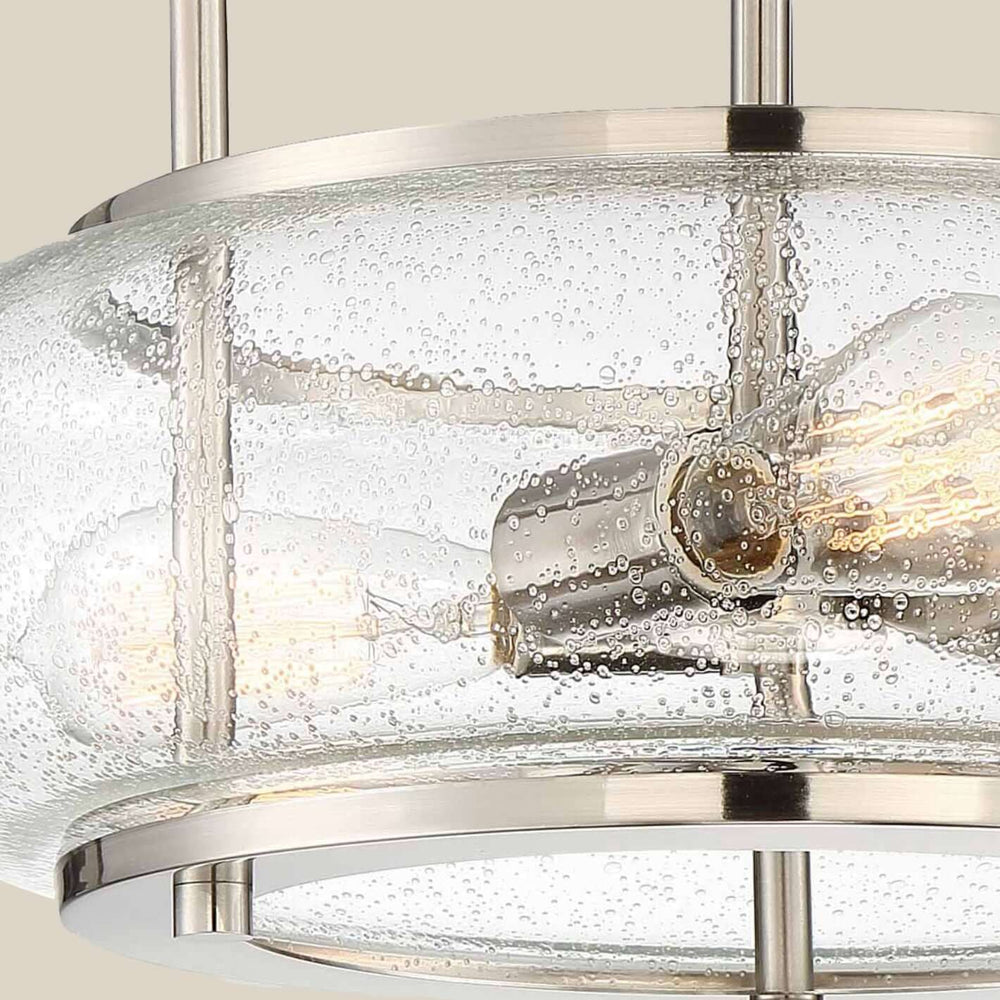 Crafted for looks and practicality. Exquisite seeded glass adds a touch of luxury, while the classic semi-flushmount light design creates an impactful look. The steel frame masterfully cradles the glass shades creating visual balance.