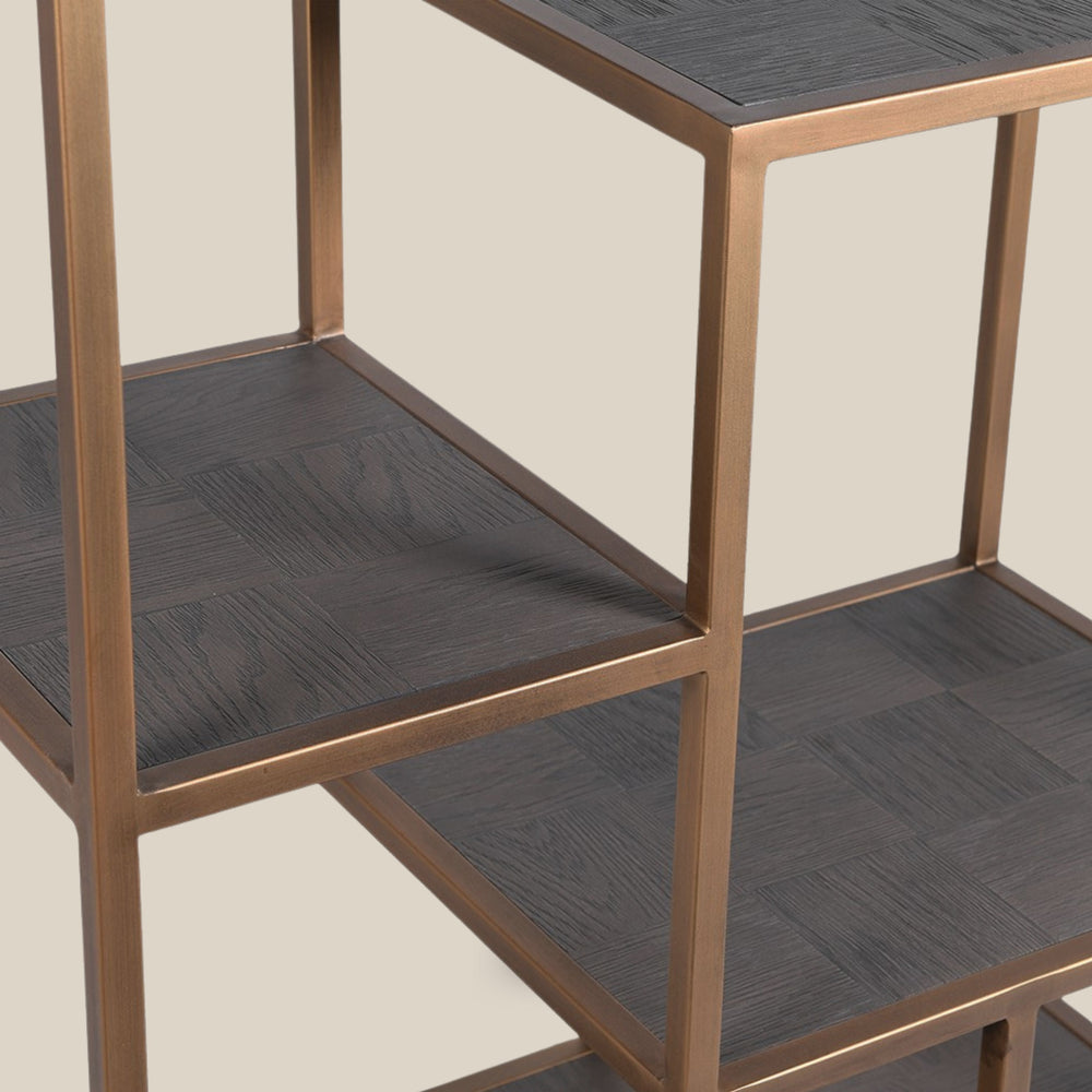 Our striking Hallé open shelving unit lets the natural beauty of oak take centre stage. Crafted with a distinctive pattern, the design celebrates the exquisite wood grain. Distinctive metal frame lends a modern design element that cleverly contrasts with the tone and texture of the wood.