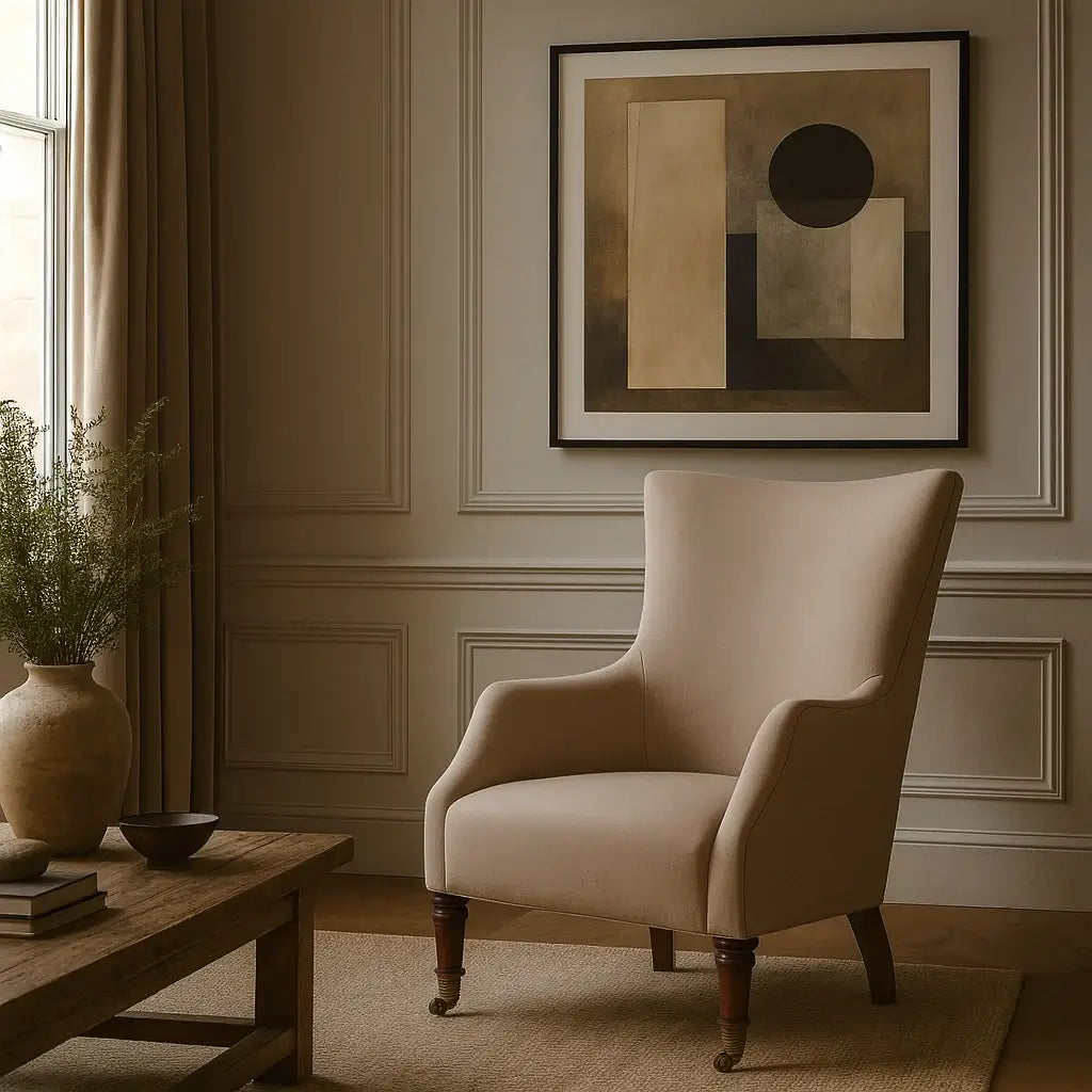 The sweep of the Penlee Wingback chair is both protective and poised. Its upholstery invites touch, while the sculpted arms rest with quiet assurance. Turned legs in warm timber anchor the form, each castor a subtle nod to heritage craft. This is not a chair to fill a corner, but one to shape the rhythm of a room—lending balance, calm, and a sense of permanence. For the design-minded, it whispers of timeless taste: a piece that belongs, always, in a life of casual luxury.