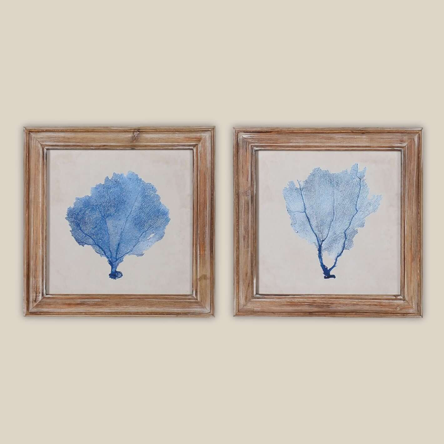 Begin with salt-air calm, held on paper. Two coral studies, finely printed on aged paper, sit within solid wood frames with a hand-limed finish. Hang in a light-washed hallway or above a console; the room slows. Colour remains true, edges stay crisp. Pieces that gather patina, not dust, and earn their place.