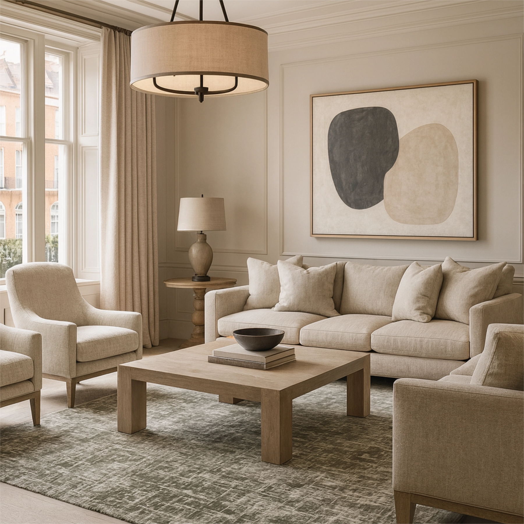 A study in quiet rhythm. Leto threads a deep moss ground with chalk-fine crosshatching, like city light sketched at dusk. The weave is soft underfoot, low-pile for easy living, with edges finished clean to sit elegantly beneath sofas and coffee tables. Its tonal depth grounds pale walls, stone, and oak; its graphic texture brings order to layered schemes. For the room where conversation lingers and the light falls slowly, this is the calm that holds the space together.