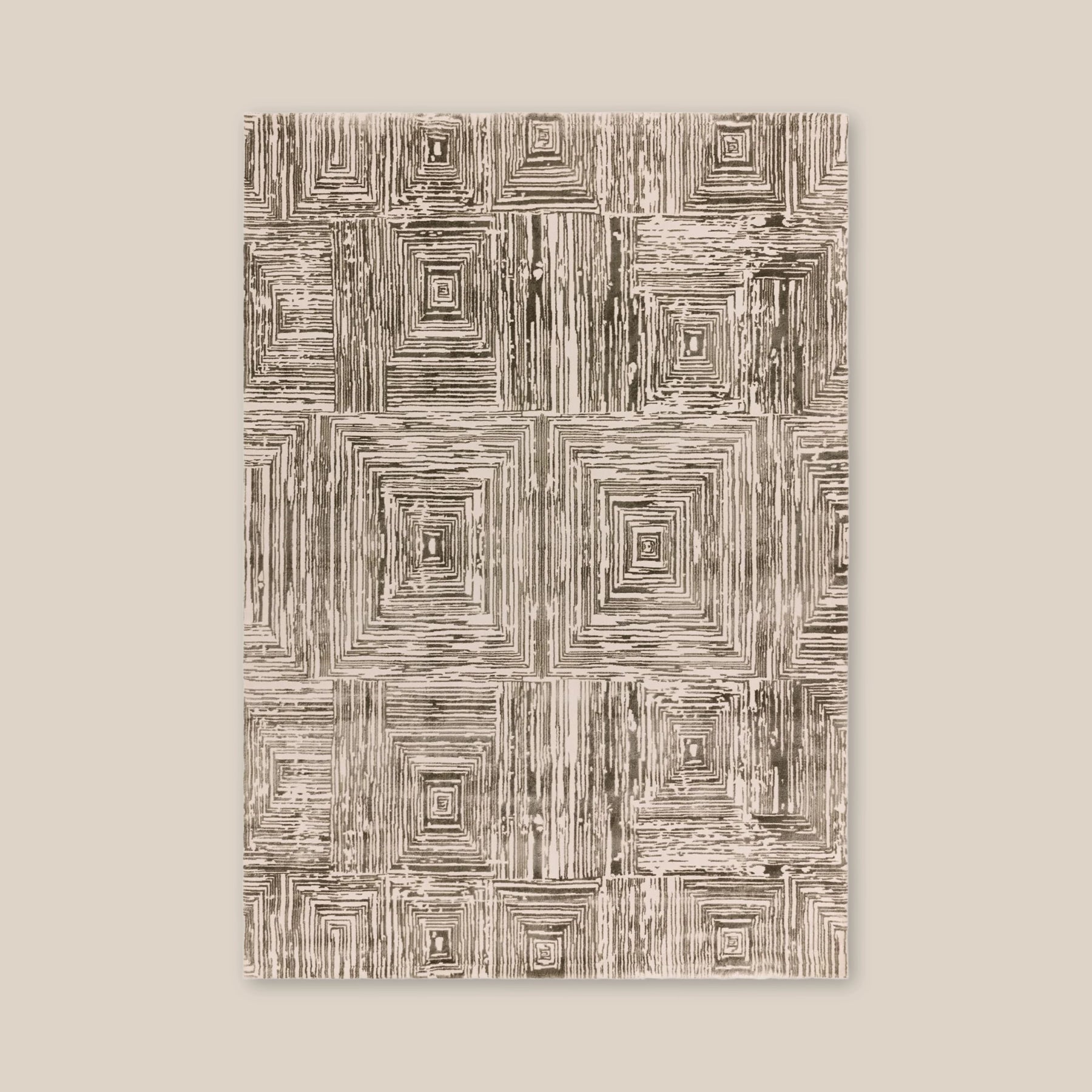 Geometry, softened. Odessa maps concentric line work into a calm, khaki-stone field—graphic but grounded. Masterfully crafted, its soft, multi-dimensional pile and subtle tonal flecks give depth underfoot and quiet rhythm to the room. Edges are tailored; the pattern drifts from centre to border with painterly restraint. It anchors sofas, flatters pale oak, and makes light read richer. Lay it in a living room or study and let the space exhale—measured, modern, unmistakably yours.